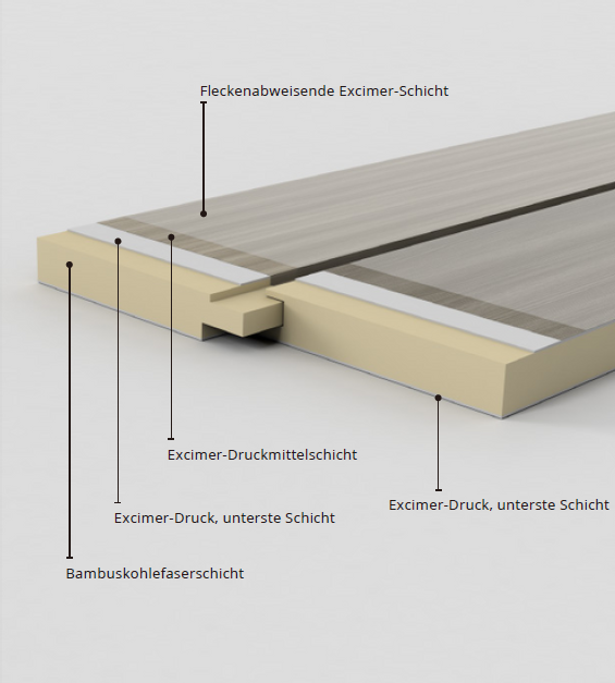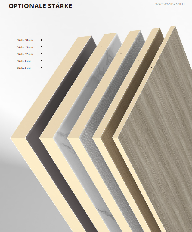 Die WPC-Serie bietet eine hochwertige und moderne Lösung für die Innenraumgestaltung. Durch den mehrschichtigen Aufbau aus kristallklarer Co-Extrusionsschicht und robuster Bambuskohlefaser sind die Paneele äußerst widerstandsfähig, wasserabweisend und flexibel. Die fleckenresistente Excimer-Oberfläche sorgt für eine langlebige, leicht zu reinigende Optik. Dank präziser Dichtfugen oder Metallprofilverbindungen lassen sich die Paneele sauber, schnell und passgenau montieren – ideal für anspruchsvolle Räume, in denen Design und Funktion harmonisch zusammenwirken.
